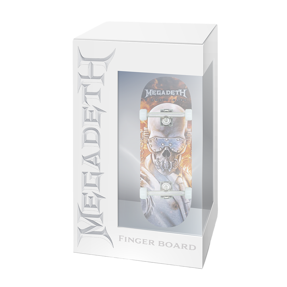 The I Don't Care Fingerboard. Featuring artwork from Megadeth's latest single release, I Don’t Care, this miniature deck is constructed from five-layer maple wood and precision hardware.